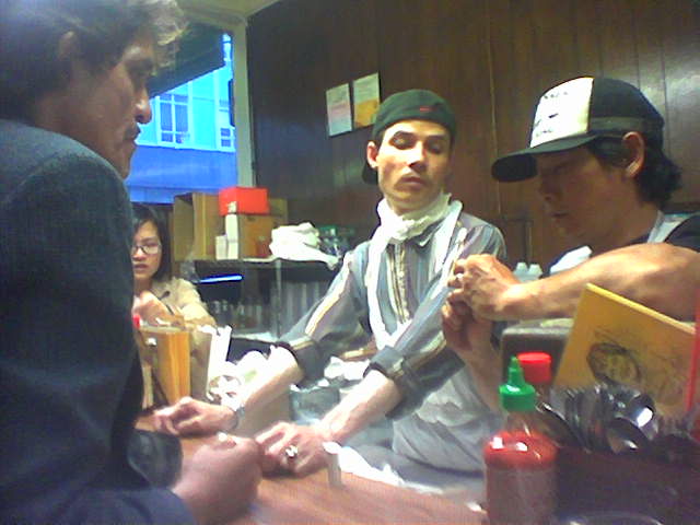 * got a $6 haircut in the Mission by a sweet old woman who couldn't speak English. I don't speak Spanish and the cut is one of the best I've ever had. It took 10 minutes. Then I walked down the block and had a wonderful (and cheap) falafel sandwich.